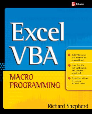 Develop custom Excel VBA macros Perfect for power users, this practical resource reveals how to maximize the features and functionality of Excel 2007. You'll get in-depth details on Excel VBA programming and application development followed by 21 real-world projects--complete with source code--that show you how to set up specific subroutines and functions. The book then explains how to include the subroutines in the Excel menu system and transform a set of interrelated VBA macros into an Excel add-in package. Create your own Excel 2007 VBA macros right away with help from this hands-on guide. Excel 2007 VBA Macro Programming shows you how to: Write and debug VBA code Create custom dialog boxes and buttons Maximize the Excel object model Write code to interact with a database Add functionality to your programs with API calls Insert class modules Develop custom menus for the Ribbon Animate objects in Excel Create and manipulate Pivot Tables in VBA Expand calculation and search functions Create full-fledged Excel add-ins Use VBA to work with XML files